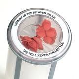 The Legacy candle is available in four glowing colors, with or without a religious emblem and houses its own memorial chamber to add an object or memorial label inside the lid for posterity.