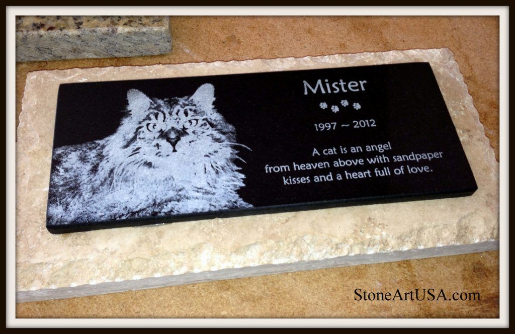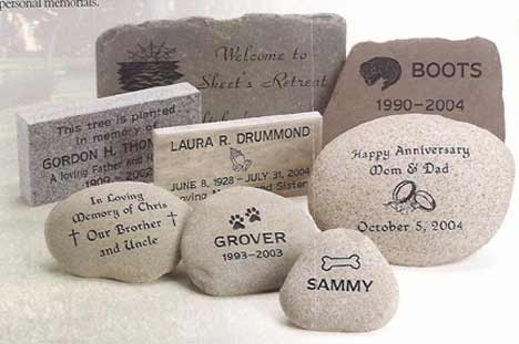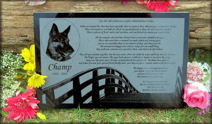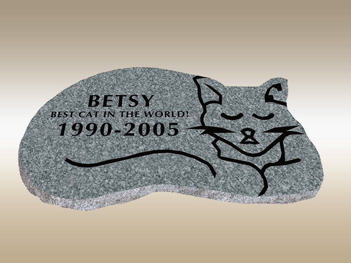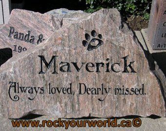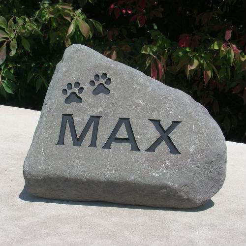 Memorials can be made with a stone that is engraved with a pet's name or nickname and a beautiful passage to remind everyone of the love shared with your pet. Your memorial garden stone will serve as a pet grave marker in your yard for your pet to be remembered always. Let us create a pet memorial that you will be proud to own.